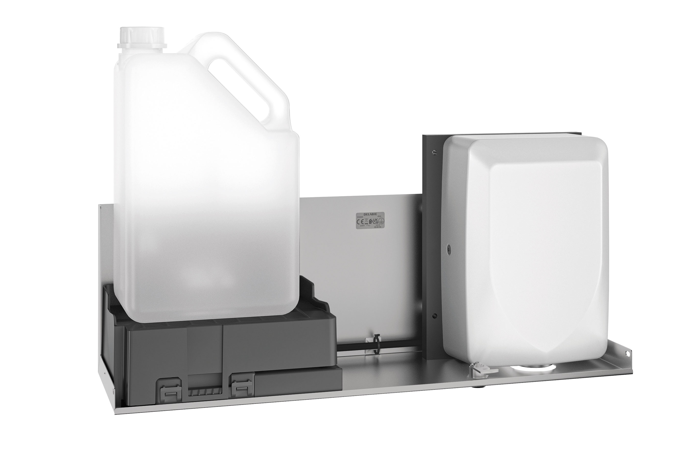 Ref. 510207IMódulo 2 funciones: dispensador de jabón electrónico y secamanos eléctrico de aire pulsado.