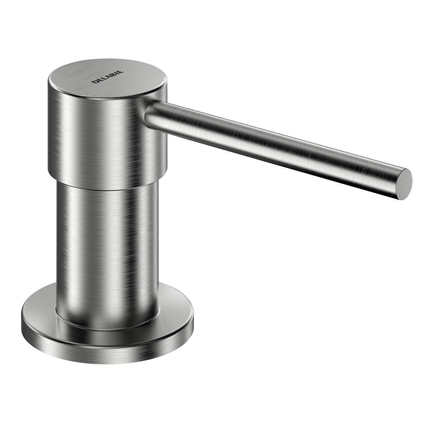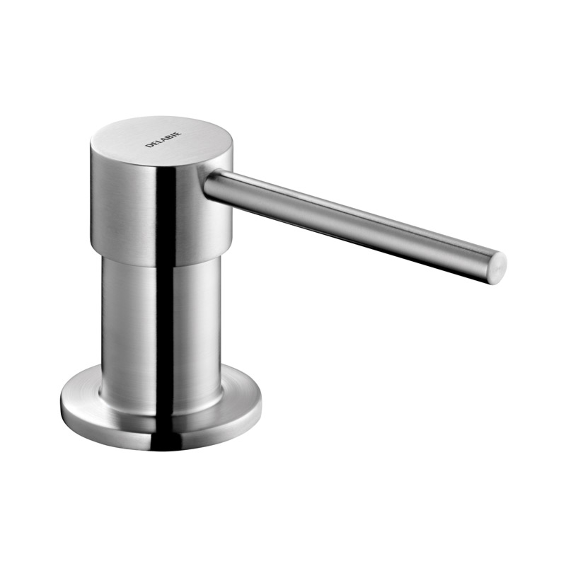 Dispensador de jabón de repisa con caño recto.