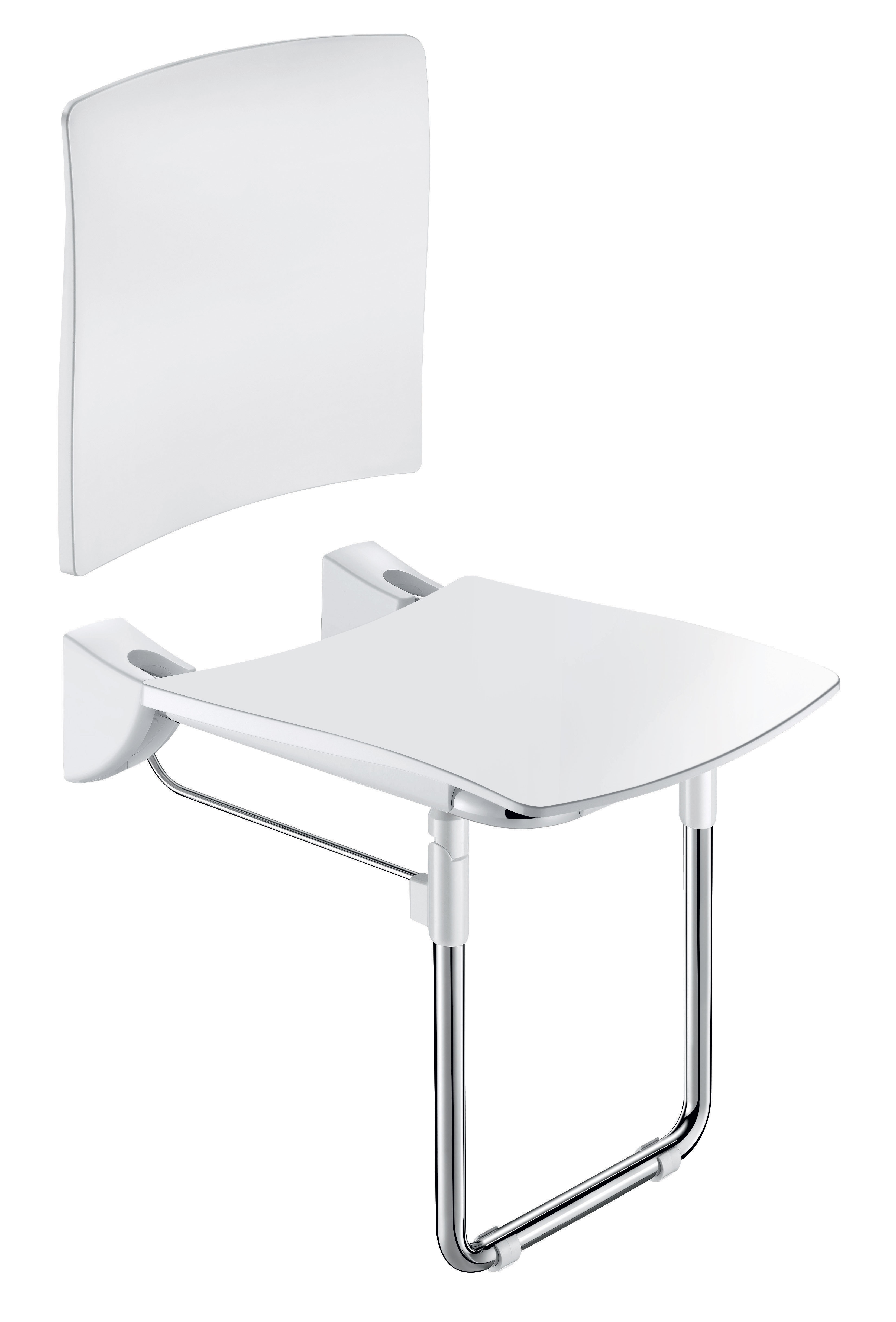 Asiento de ducha mural abatible y respaldo para fijar.