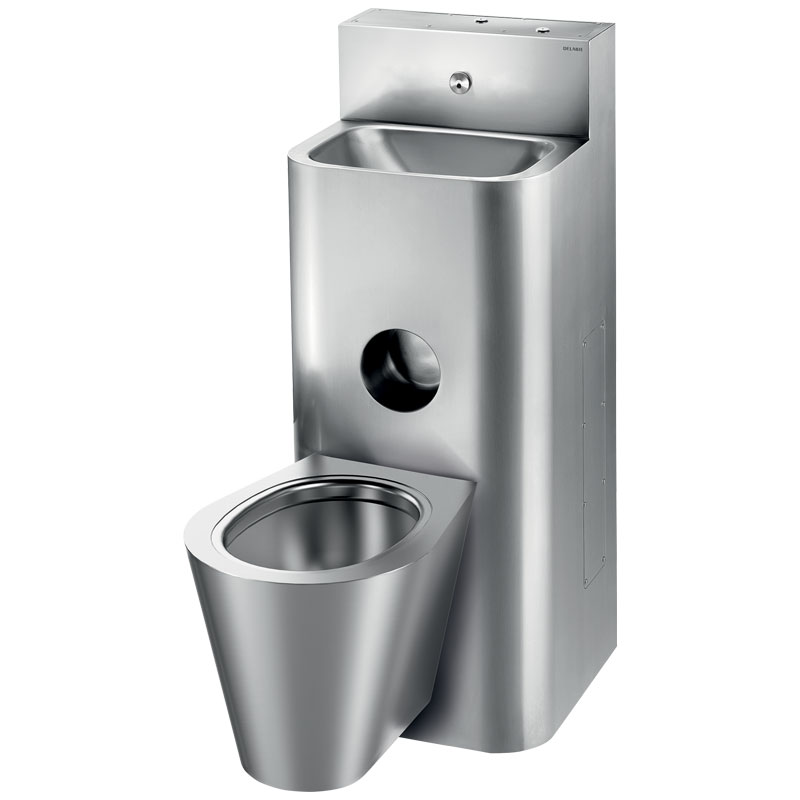 El inodoro está completamente soldado al lavabo, sin tornillos, para facilitar su limpieza y evitar la posibilidad de ocultar objetos.
