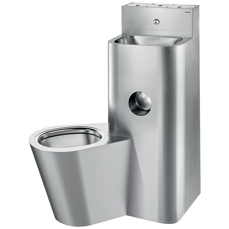 El inodoro está completamente soldado al lavabo, sin tornillos, para facilitar su limpieza y evitar la posibilidad de ocultar objetos.