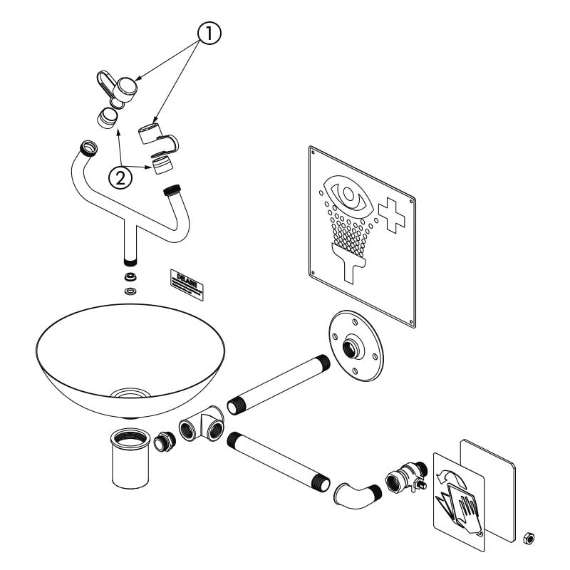Se suministra una placa de identificación normalizada «lavaojos de emergencia».