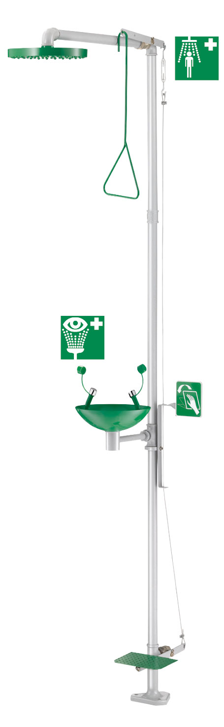 Combinación de ducha y lavaojos de emergencia