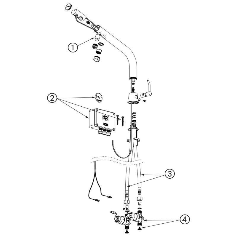 Detección de presencia mediante infrarrojo activo optimizada gracias a su ubicación en el extremo del caño.