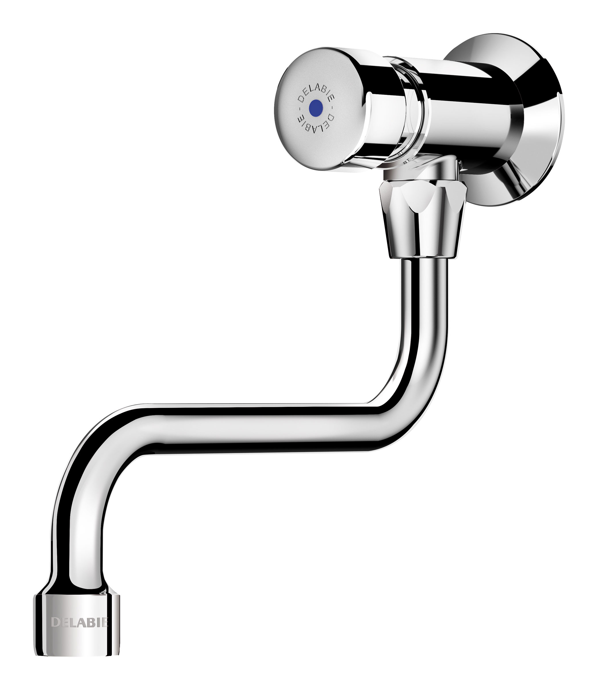 Ref. 748150Grifo temporizado mural con caño giratorio: