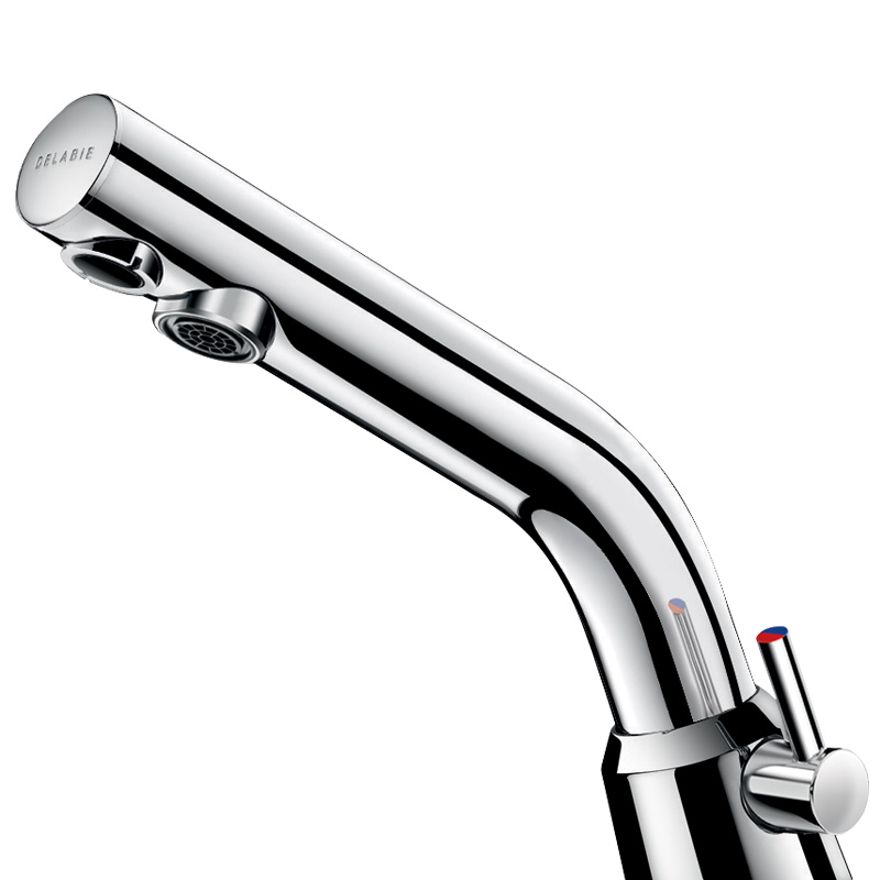 Detección de presencia mediante infrarrojo activo optimizada gracias a su ubicación en el extremo del caño.