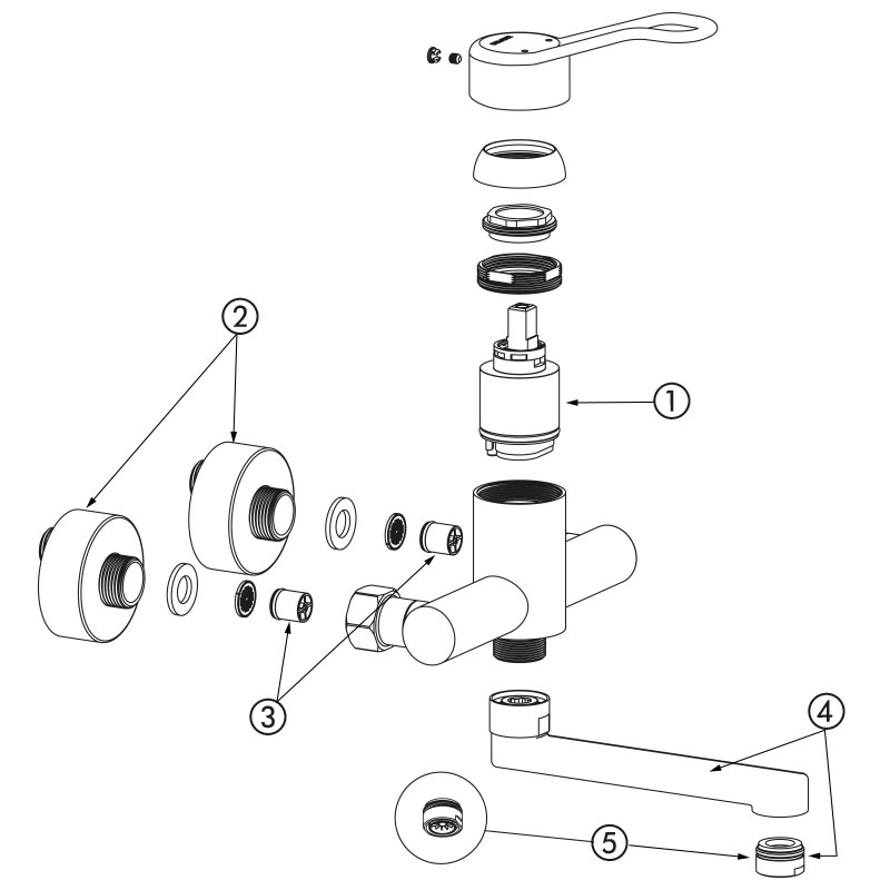 | 2445EPS | Cartucho EP - Caño L.200 - Maneta abierta -Racores excéntricos estándar | 320,34 € sin IVA | |