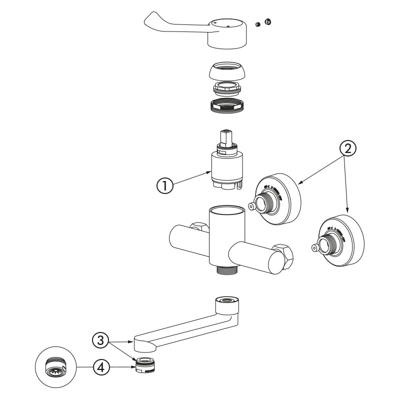 | 2445L | Cartucho clásico - Caño L.200 - Maneta Hyg. - Racores excéntricos STOP/CHECK | 320,93 € sin IVA | |