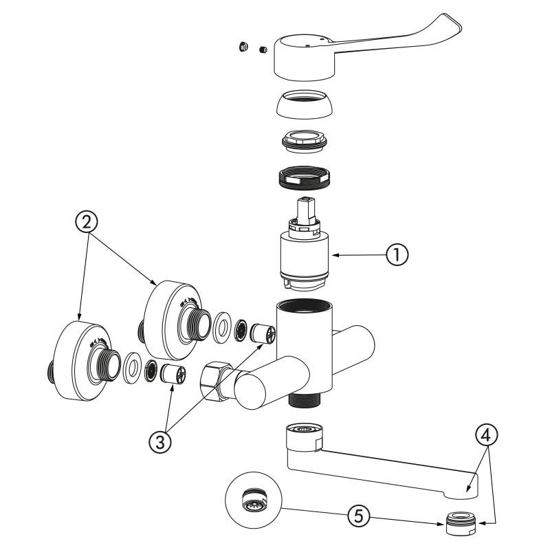 Grifo mezclador mecánico especialmente adecuado para centros de salud, EHPAD, hospitales y clínicas.