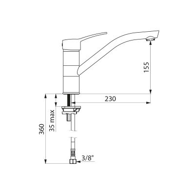 Grifo mezclador de un solo orificio con caño orientable H.155 L.230