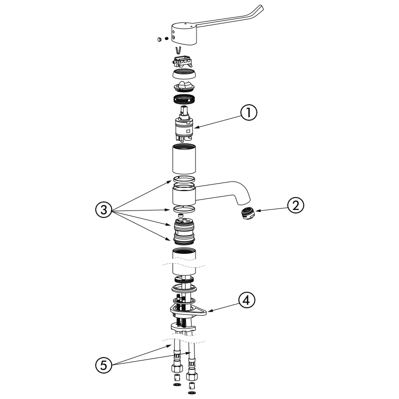 Ref. 2564T1Grifo mezclador de lavabo monomando de repisa.