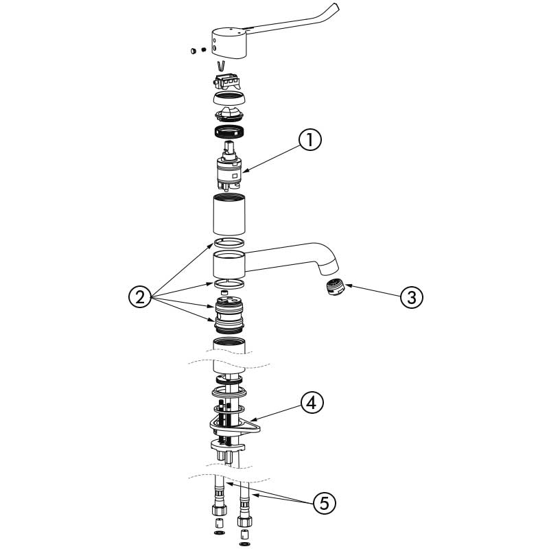 Grifo mezclador monomando especialmente adecuado para establecimientos sanitarios, residencias de la tercera edad, hospitales y clínicas.