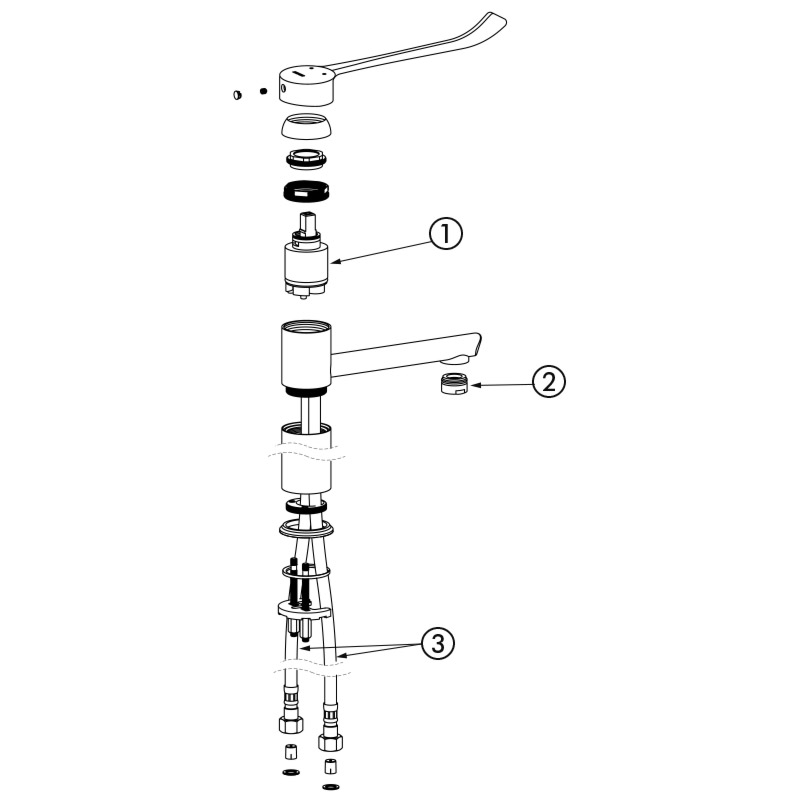 Grifo mezclador monomando especialmente adecuado para establecimientos sanitarios, residencias de la tercera edad, hospitales y clínicas.