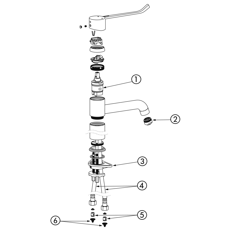 Grifo mezclador monomando con equilibrado de presión especialmente adecuado para establecimientos sanitarios, residencias de la tercera edad y hospitales.