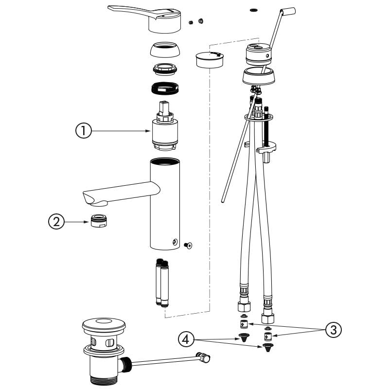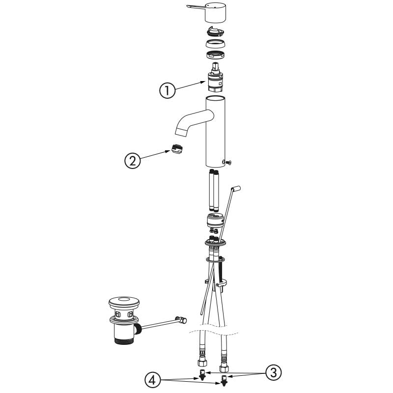 | 28201T | Cartucho clásico - Maneta recta - Con tirador - Sin llave de corte - Latiguillos flexibles | 339,59 € sin IVA |
