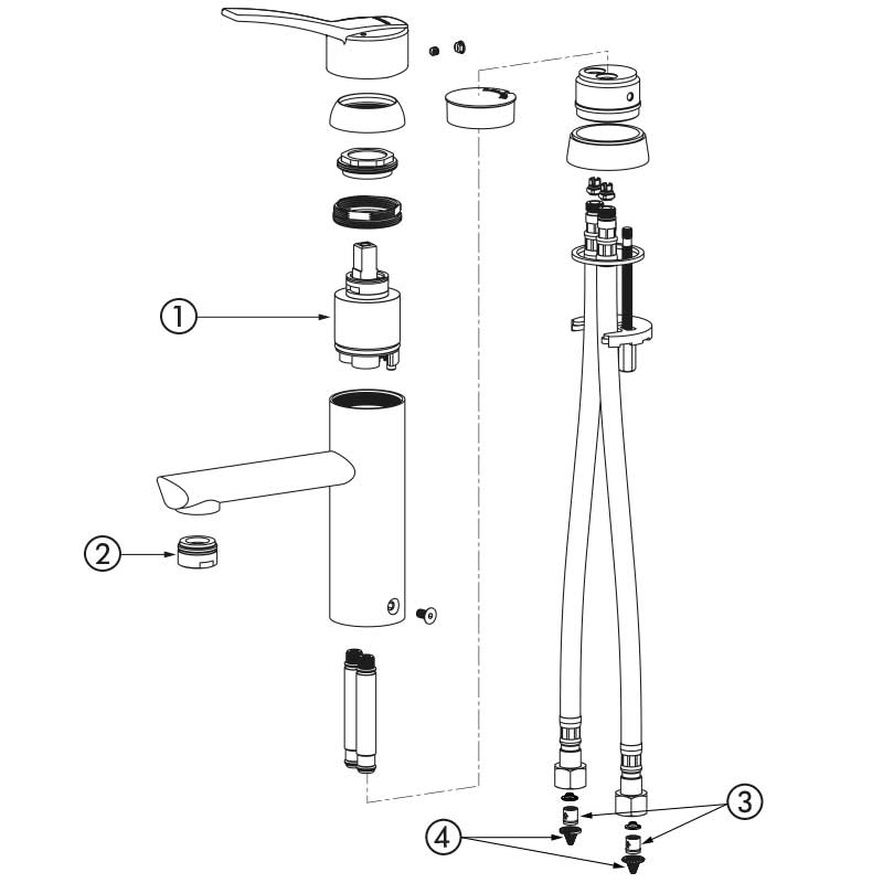 | 28201T | Cartucho clásico - Maneta recta - Con tirador - Sin llave de corte - Latiguillos flexibles | 339,59 € sin IVA |
