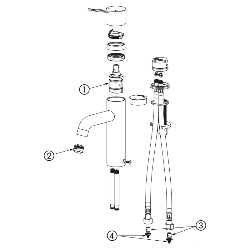 | 2821T | Cartucho clásico - Maneta recta - Sin tirador - Con llaves de corte - Latiguillos flexibles | 323,78 € sin IVA | |