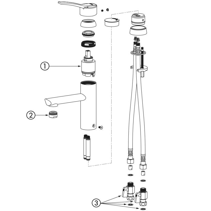 | 2820L | Cartucho clásico - Maneta Hygiene - Con tirador - Con llaves de corte - Latiguillos flexibles | 356,82 € sin IVA | |