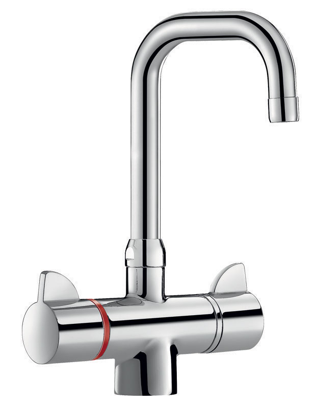 Grifo mezclador termostático especialmente adecuado para establecimientos de salud, residencias de la tercera edad y hospitales.